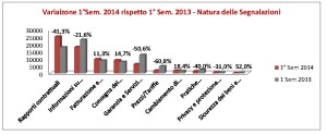 Qui di seguito presentiamo un'analisi delle segnalazioni ricevute da Altroconsumo da parte dei soci nel 1° semestre del 2014 raffrontando con le telefonate ricevute nello steso periodo del 2013.