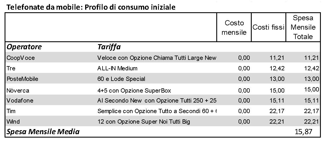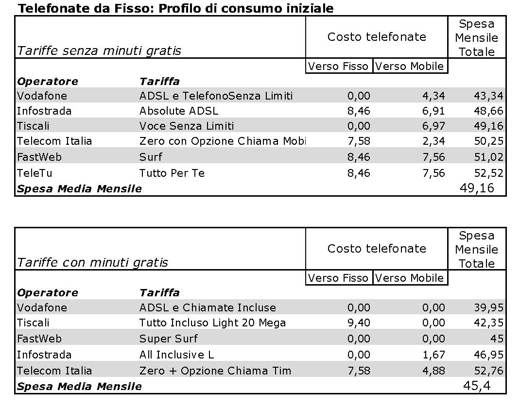 Per verificare se il mercato ha recepito la variazione delle tariffe di terminazione, si è immaginato di spostare sull’utenza di casa una percentuale del traffico effettuato abitualmente da cellulare a cellulare. Si vuole verificare se, dato l’abbassamento delle tariffe di terminazione mobile, i prezzi delle chiamate da fisso a mobile siano scesi. In questo caso, spostando le proprie chiamate sul telefono fisso, si potrebbe diminuire la spesa complessiva per chiamare da casa e in mobilità.