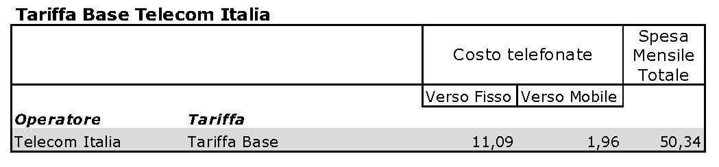 Si prevede una stima della spesa mensile per il telefono fisso e per il cellulare, effettuata per una selezione di tariffe dei più importanti Operatori del mercato, compresa la Tariffa Base. La rilevazione di tale tariffa è avvenuta alla fine del mese di marzo 2013.