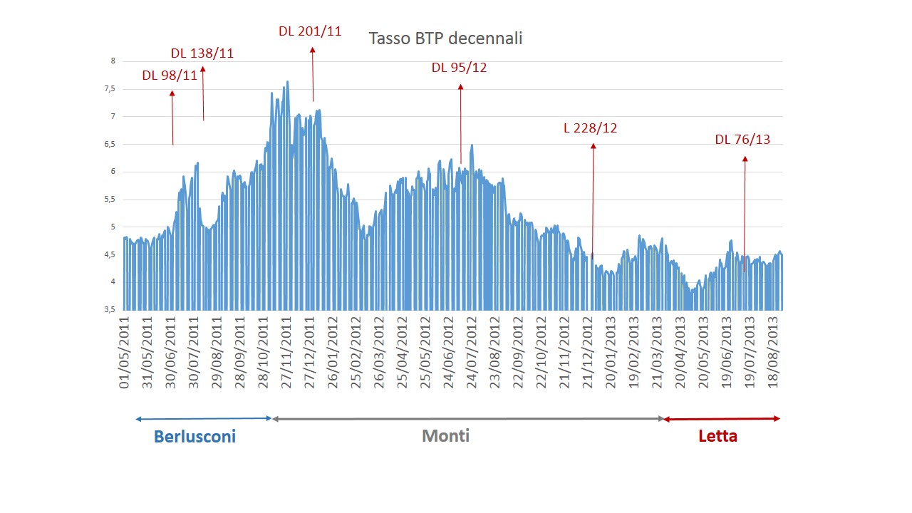 La nostra vicenda incomincia dall’estate 2011. Nel mese di luglio si manifestano le prime avvisaglie del “mal di spread” ovvero della crisi di sfiducia dei mercati nei confronti delle istituzioni italiane che ha portato il Paese ad un passo dalla bancarotta.